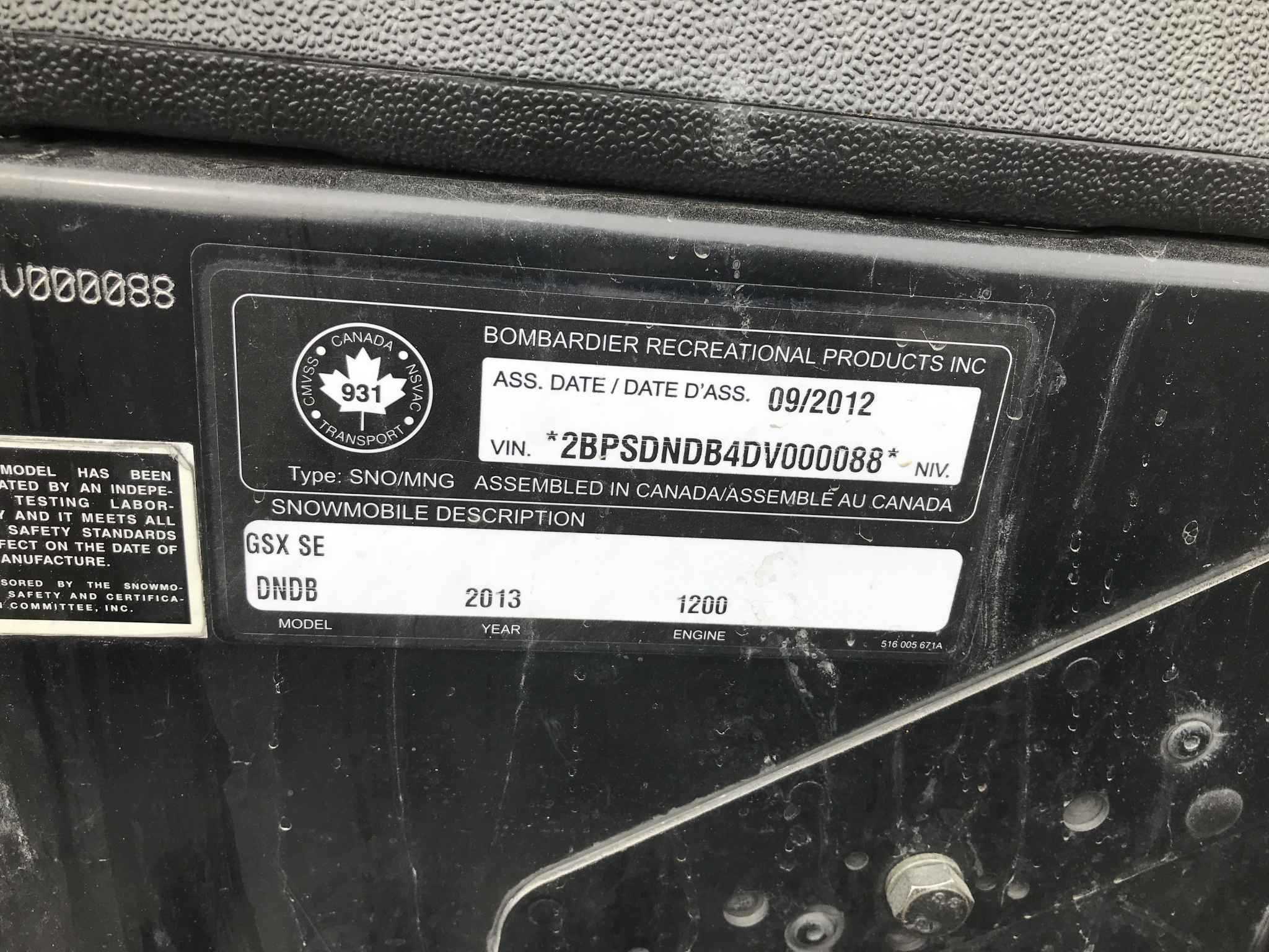 Motoneige Skidoo Brp – 2013