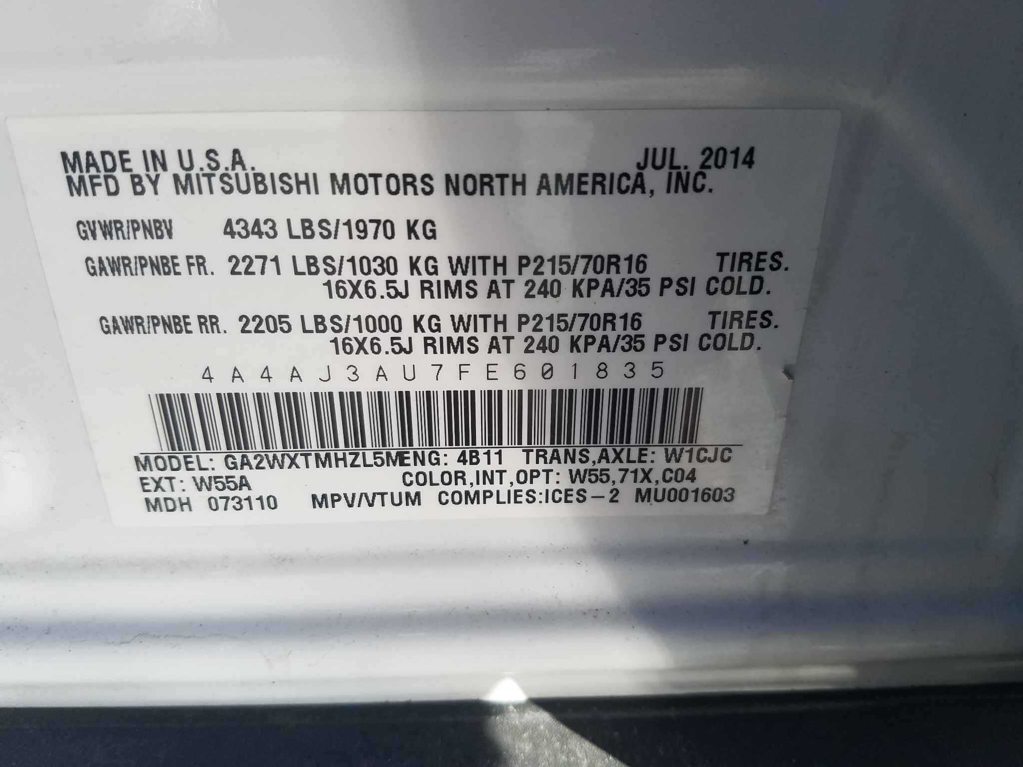 Mitsubishi Rvr – 2015
